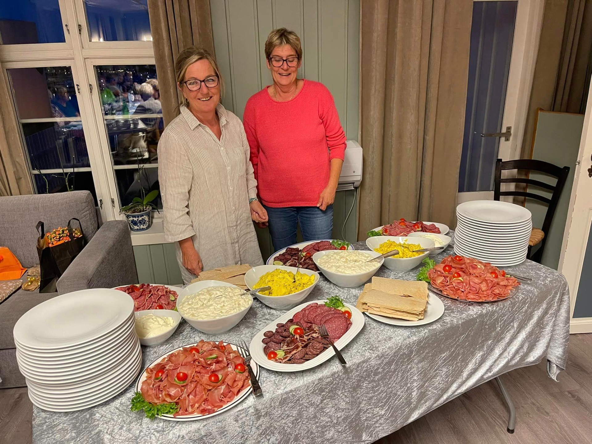 Mange flittige hender bidro, og i løpet av kort tid hadde vi ferdigstilt ris og hjerter for salg. På dette første møtet i januar fikk vi servert pølser og tilbehør.