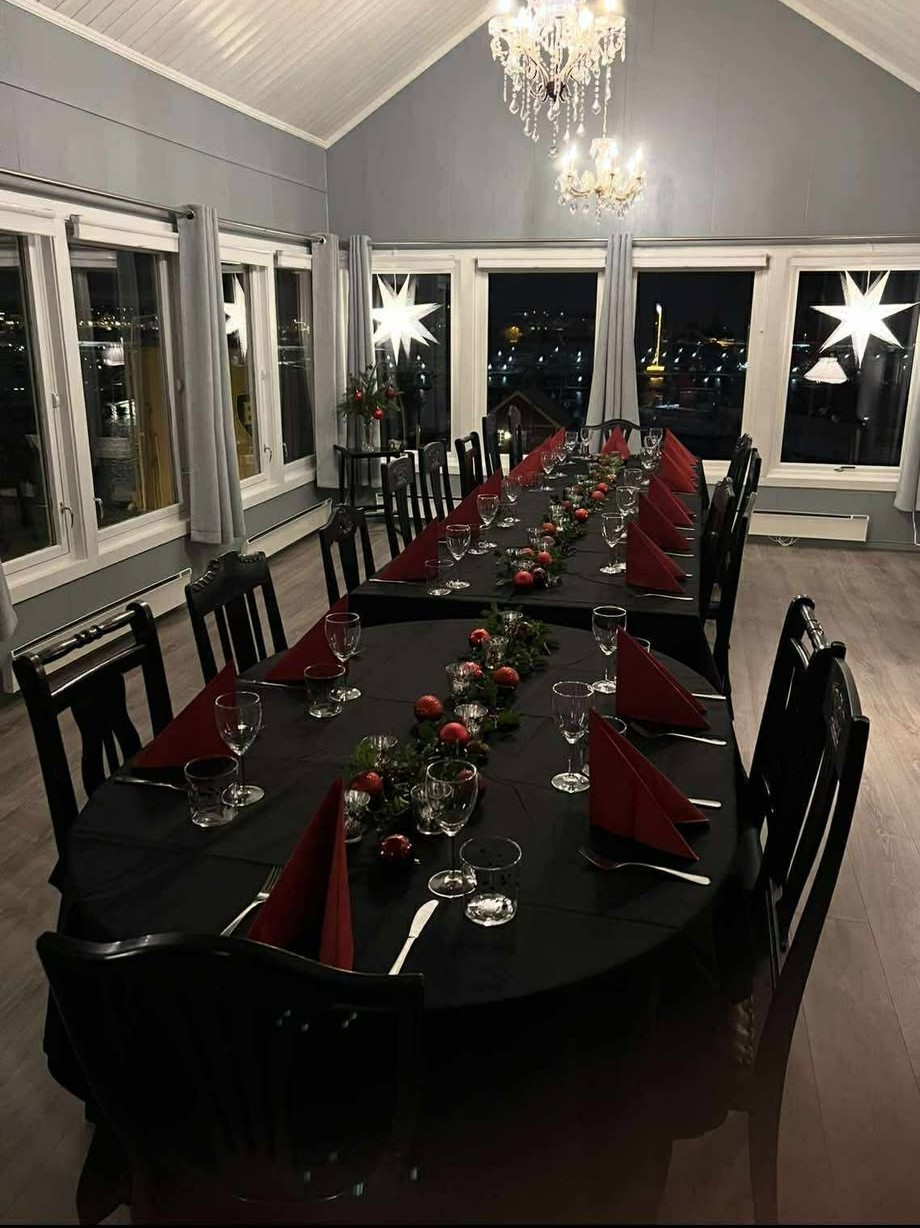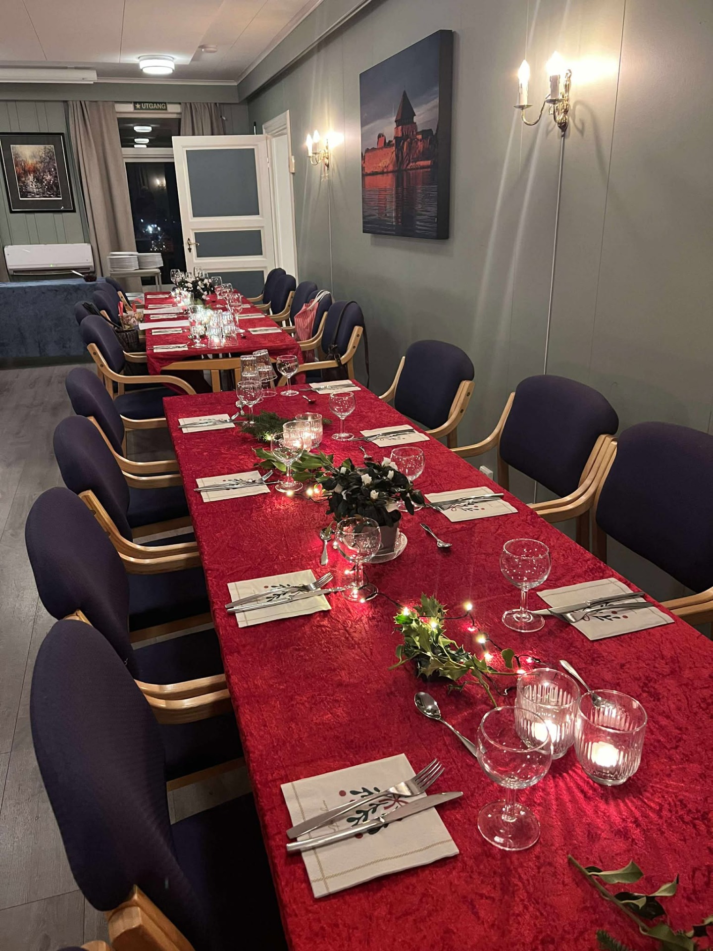 Selskapslokalet i 2. etasje dekket til selskap. Kom opp og se den flotte utsikten!